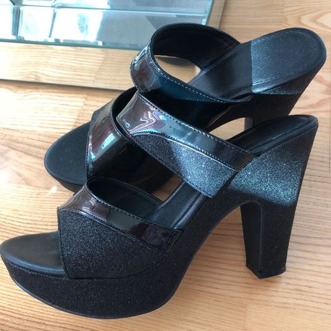 Lekre sko i sort og sølv. Størrelsen er 40, men vil si det er en 39. Hælhøyde: Ca. 5,2 cm. Betaling via Vipps/kontant. Kjøper betaler porto kr. 85,- (muligens kr. 130,-). Se bilder!! 🌟🌟🌟
