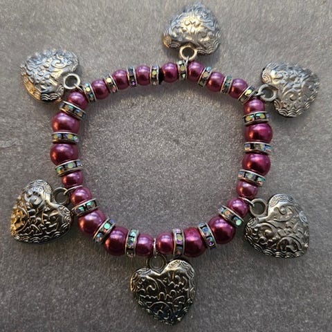 Superfint perlearmbånd i tre deler som kan brukes sammen eller hver for seg. Ett enkelt lys rosa perlearmbånd, ett sølvfarget og ett rosa perlearmbånd med påfestet sølvhjertecharms. Armbåndet er aldri brukt. Jeg sender stort sett alltid første virkedag etter mottatt penger for frakt :)