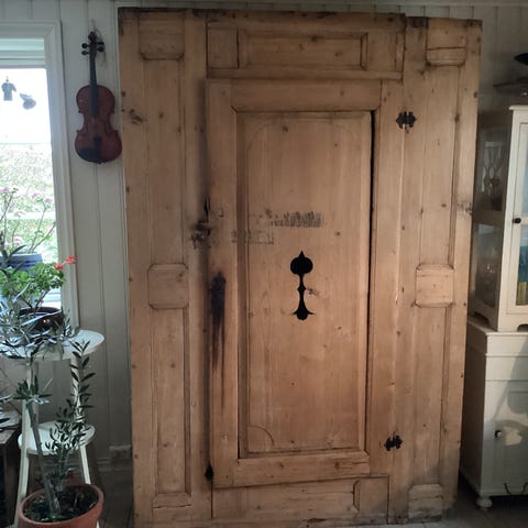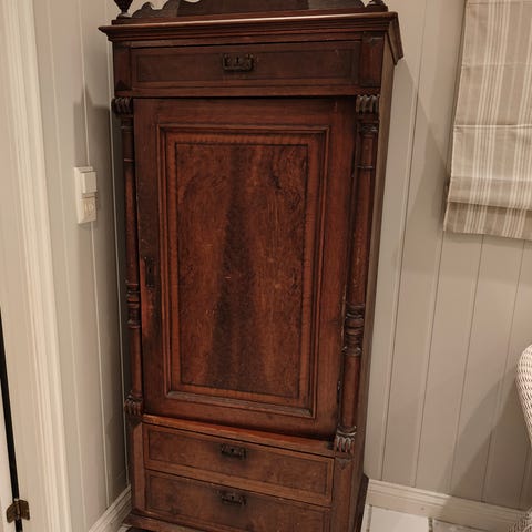 Antikk Fransk skap i massiv eik, med flott utskjæringer. 1700/1800 tallet.