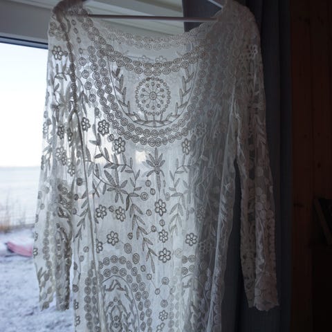 Hvit ivory farge - med blonder / blonde stoff ytterst - se bilde :)