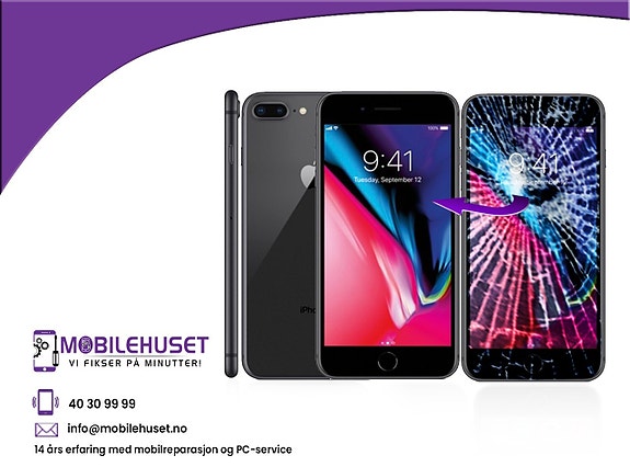 Skjerm på iPhone 8 serie pris fra 599,- kr