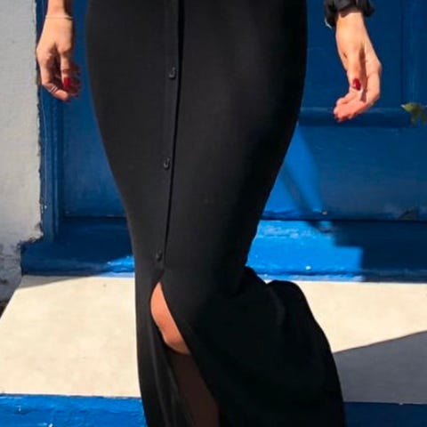 Mykt svart skjørt med perler som lyser. Veldig mykt materiale. Kan strekke til å passe til et medium. Noen ganger passer jeg liten og noen ganger middels. Den har en vakker strikket deksel. Unik design. Brukte kanskje to ganger.