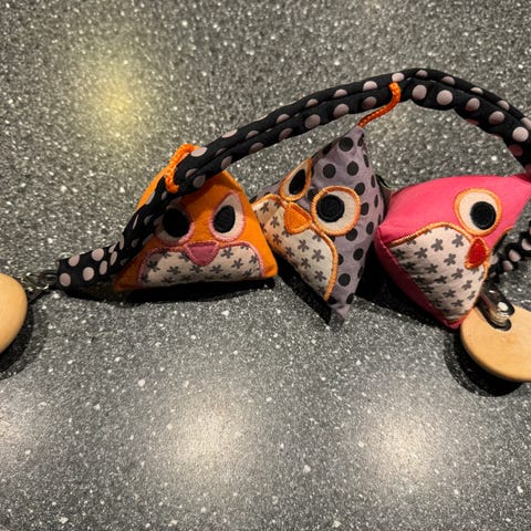 Håndlaget supersøt leke til å henge på vognen, bilstolen eller ved sengen. Anbefales fra 0 år.