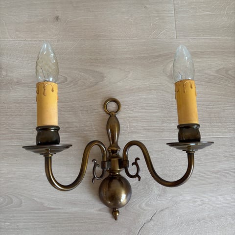 Håndlaget vegglampe av massiv messing med E27 lampeholder godkjent for 60W.