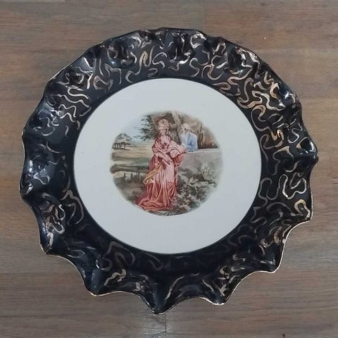 Kråkerøy Keramikk - vakkert fat med rokokko motiv