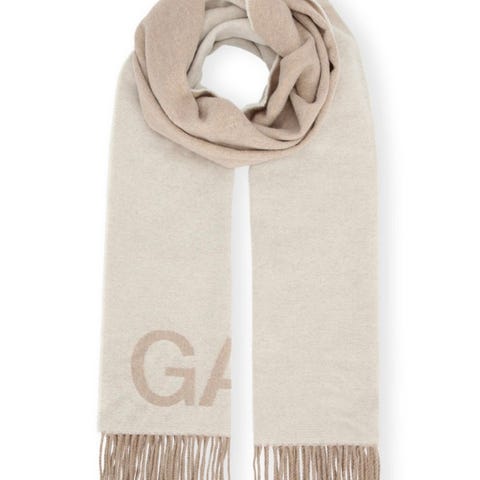 Kremhvitt ullskjerf i alpakkaull som er brukt én gang.