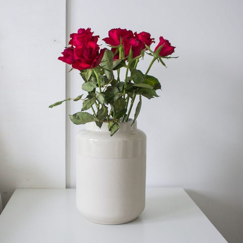 Pent brukt vase fra Wik & Walsøe. Framstår som ny. Mønsteret er i lys grønn farge. Høyde 20,5 cm.