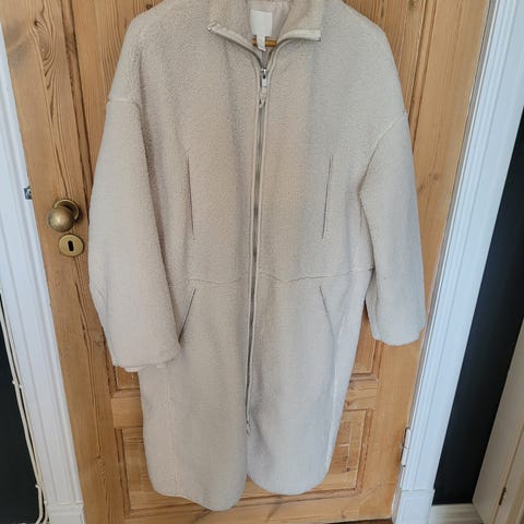 Har hette som kan tas av. Foret m fleese hetta og krave. Har belte og som kan tas av