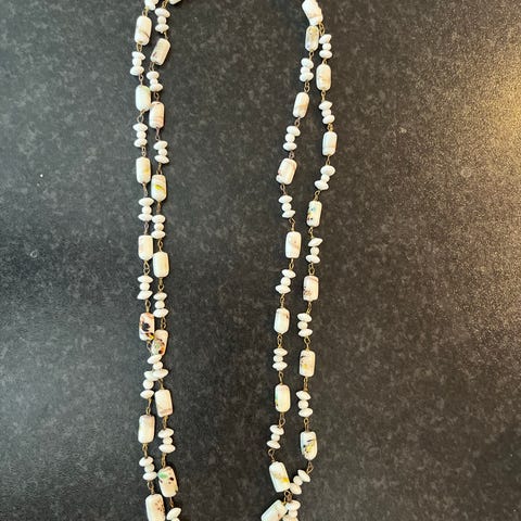 Armbånd i hvit metall og lys blà glass perler