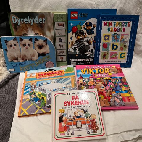 Dette er en annonse på vegne av barna mine, som ønsker å selge div leker, bamser, figurer, bilder, bøker, puslespill.