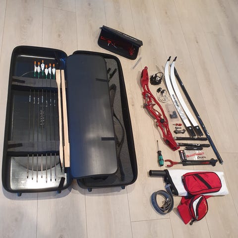 Komplett med bære eske, standard, bryst beskytelse, plunger, klikker, sikt. Alt som trengs.