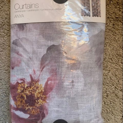 En ny gardin str. 140x220 cm til salg. Har bare en igjen. Den er maljegardiner. 52% bomull, 48% polyester.