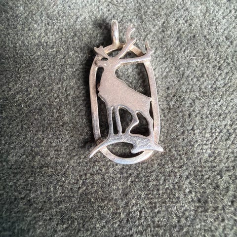 LIten anheng laget av reinsdyrbein og sølv.