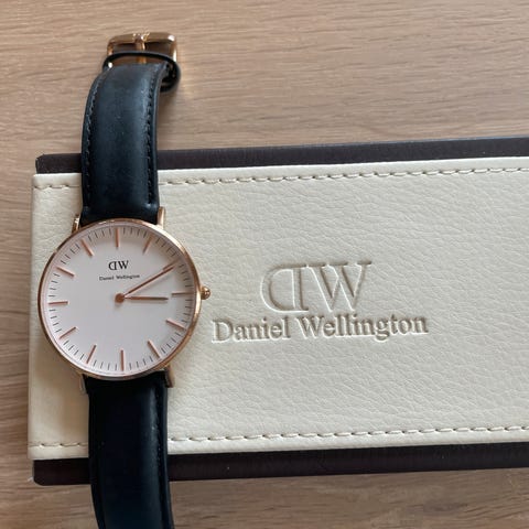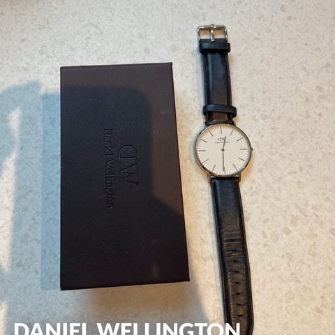 Selger min fine Guess-klokke i rustfritt stål med hvit gummireim. Ikke blitt brukt på mange år.