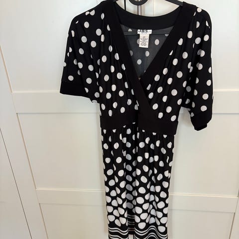 Nydelig grå og sort kjole fra Izabel of London som passer både til hverdags og fest. Typisk a-line kjole som sitter som et skudd over skuldre og rundt livet og vier seg deretter ut i en flatterende triangulær form. Blonde-ermer og detaljer foran. Størrelse UK 10/EUR 38. Kjolen passer til small og medium grunnet stretch i materialet. Jeg har et overfylt klesskap og har ikke fått anledning til å bruke kjolen (den er som ny) så jeg håper noen andre kan få glede av den.
