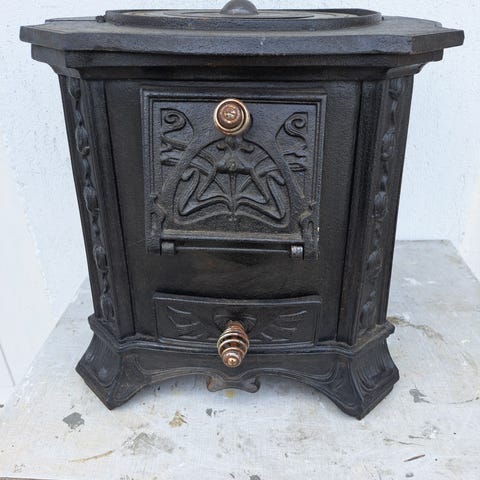 restaureret ovn klar til opsætning.Sandblæst og udmuret med ildfaste sten.Alt fungerer og askeskuffe inclusiv.