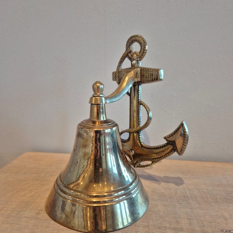 VINTAGE SKIPISKLOKKE I MESSING MED VEGGFESTE