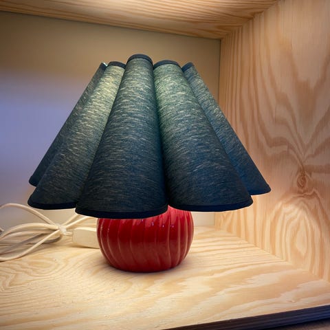 Lampen kommer med en brun ledning med av/på knapp, lengde ca. 2,4m. Støpsel eller stikk er ikke jordet. Sokkel passer for E14 pære, pære er ikke inkludert.
