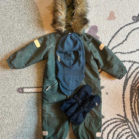 1 vinterdress, 1 lue 1 par votter, 2 jakker, 1 overtrekksdress, 1 fleecegenser, 1 kjøredress. Kan sendes.