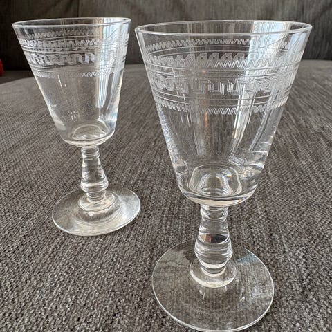 Hele og veldig fine. De er 15 cm i høyden og 6,5 i diam oppe