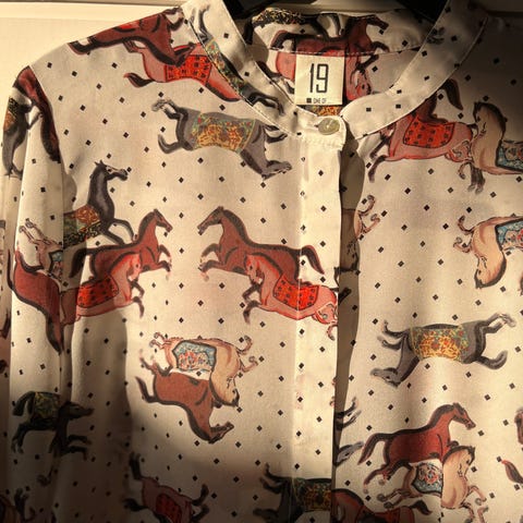 Lekker skjorte i silkeimitasjon i hvitt med sorte blomster. Skjorten lukkes med knapper foran. Den er kun brukt en gang, og er størrelse M. Materiale: 100% polyester. Jeg sender stort sett alltid første virkedag etter mottatt penger for frakt :)