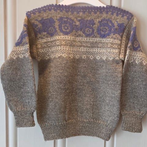 Ny håndstrikket barnegenser i 100% norsk ull.