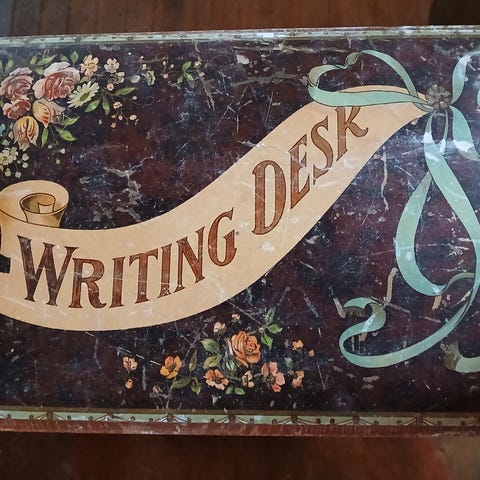 Filten på skriveflaten har løsnet litt, men er ellers i god stand.