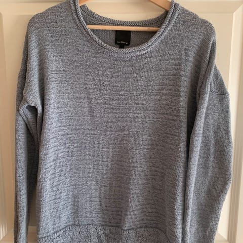 Pent og lite brukt genser fra Espirit selges. Genseren er blå med hint av grått i seg og har brune lappedetaljer på armene (på baksiden, ved albuene).