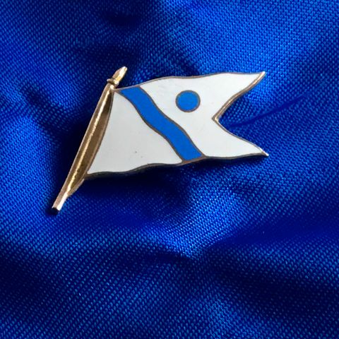 Emaljert rederi-flagg fra tidligere Svenske Amerikalinjen.