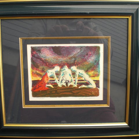Flott litografi av Tor Sværd Sørensen f. 1942.