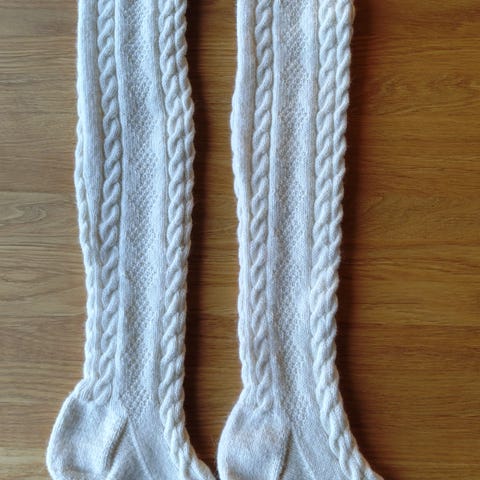 Flotte, nye og hjemmestrikkede bunadsstrømper selges kr . 950. - pluss porto. Off white farge, myk ull. Passer til alle herrebunader. Forsterkning på hæl og tå. To størrelser, 41-43 og 43-45:. Kan sendes i posten som brevpost, billigste valg, kjøper betaler da porto.