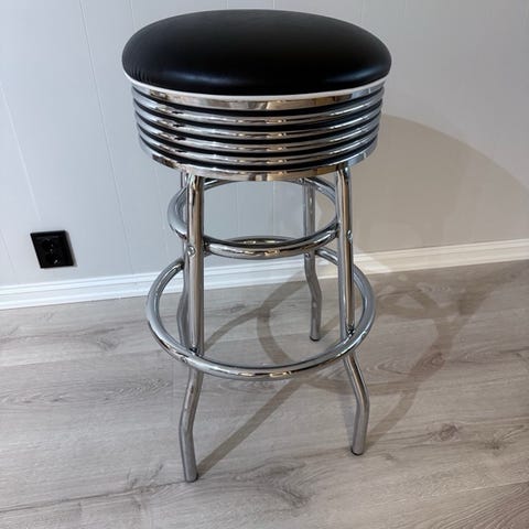 Klassiske Bel Air barkrakker i 50-talls amerikansk diner stil konstruert i solid krom i følge med polstring i kunstlær som kommer i 8 flotte farger og i mange forskjellige varianter, i forskjellige høyder og med eller uten rygg!