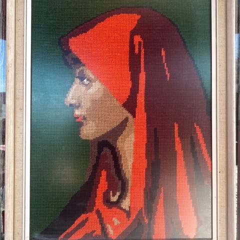 Nydelig innrammet broderi bilde. "Sigøynerpiken" .