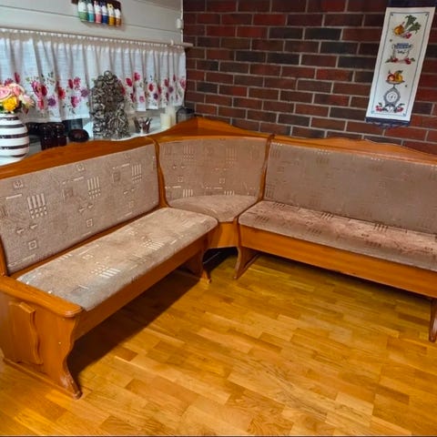 Benker , bord , møbler. Platting og annet .