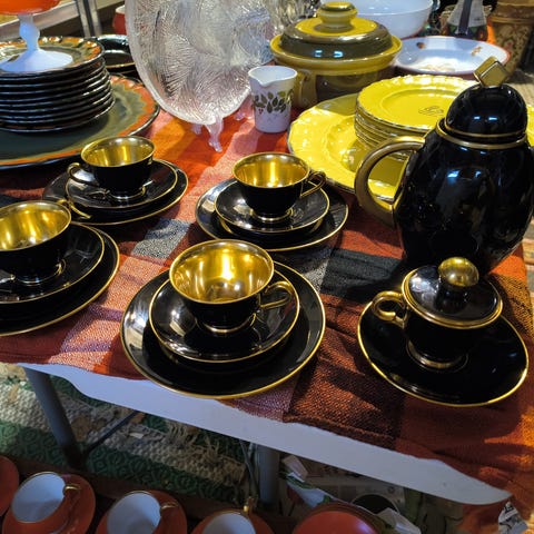 Kake asjett, 8 stk, kr. 50,- pr. stk, liten skål, 2 stk, kr. 50,- pr. stk, større skål, 5 stk, kr. 75,-pr. stk, stor skål (tung), kr. 175,-