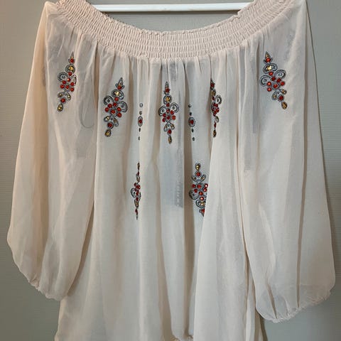 Lekker, rød blondetopp fra klesmerket Morgan. Toppen er i størrelse Medium og av viscose kvalitet. Dette er en topp som «slår» - et skikkelig blikkfang!