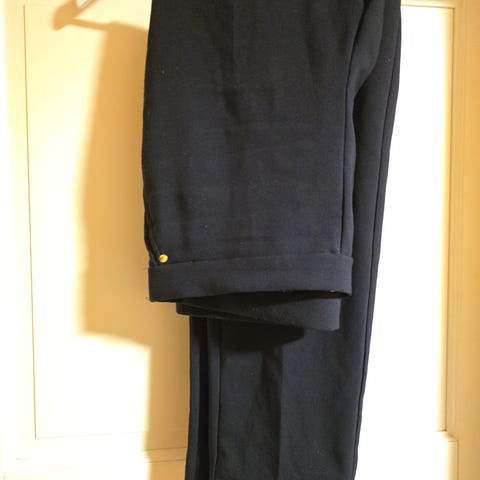 kr 100,-.NY Lekker mørk marine stretch bukse m tynne striper