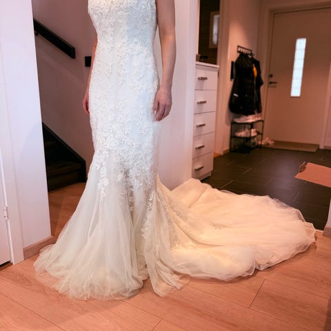 Pen brudekjole i str 36-38 til salgs. I farge Ivory /elfenben.