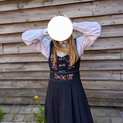 Pen drakt i polyester og viskose.Brukt 1 gang Skjørtet er fôret. Kjøpt i en brudekjole butikk. Det står str 12 i usikker på hvilken str,men jeg tipper 36-38