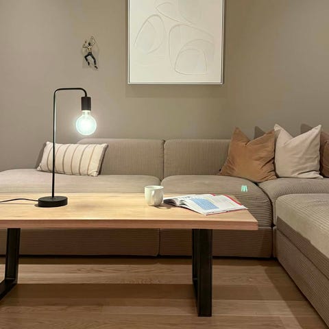 På en av de tre lampene er det montert en bryter som kan betjene alle de tre lampene. Nødvendig nettdel følger også med i leveransen.