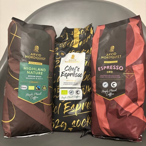 "Classic Arvid Nordquist Dark Mountain er mørkbrente, hele arabicabønner.