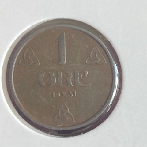 Flott 1 øre 1943 jern kull sort kvalitet 0 selges kr 90,-