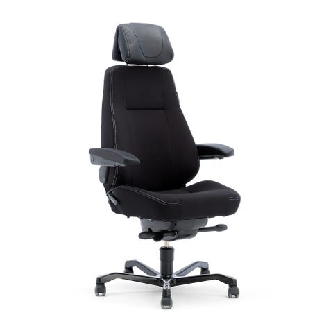 Den høye ryggen med justerbar nakkestøtte gir god avlastning for nakke og skuldre. Armlenene er høydejusterbare og stolen har låsbar, synkron gynge og dybdejusterbart sete.