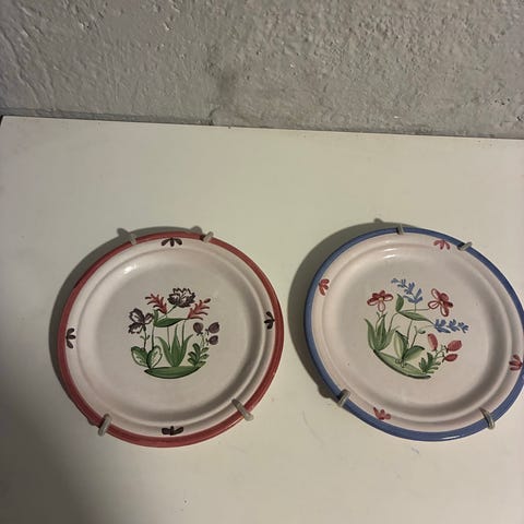 4 tallerkener 28,5 cm diameter. Flott stand (de ene 3 små avskallinger bak, se bilde kr.150).Kr. 250 pr stk, Alle samlet kr.700.