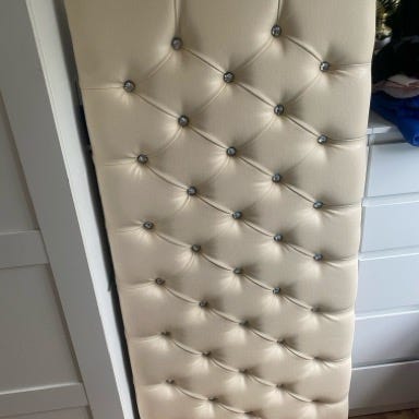 Blå + rød sengegavl. Helt som nye. Pakket inn.
