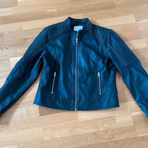 Marineblå jakke i skinnimitasjon fra Sister Point. Ubrukt, lappen fremdeles på.