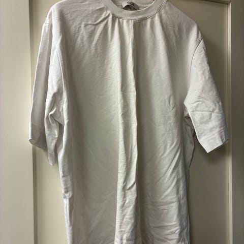 Ny oversized t- skirt -kjole str. S selges. Lys gul farge. Aldri brukt/ prøvd. Tilsvarer str. L. 100% bomull. Kjøper betale frakt.