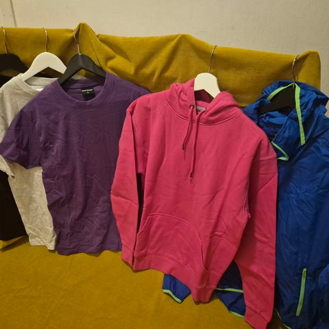 Hettejakke, piquet t-skjorter og vanlig t-skjorte.