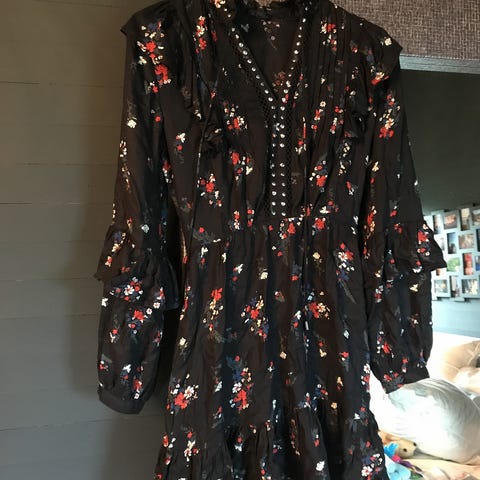 Stripete off-shoulder kjole fra River Island. Sort med hvite striper. Størrelse S. Lite brukt