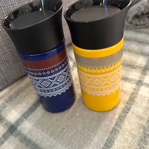 Selger hjemmestrikkede tennbrikett skjulere med div mønster på. Strikket i garn som inneholder alpakka, ull, nylon, bomull og akryl.